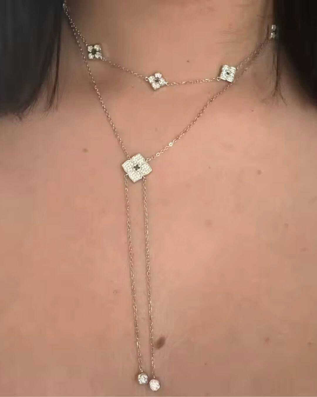 Crafted from sterling silver with an 18k white gold–plated finish, this piece is designed to sit beautifully on the neckline and elevate both everyday and evening looks.